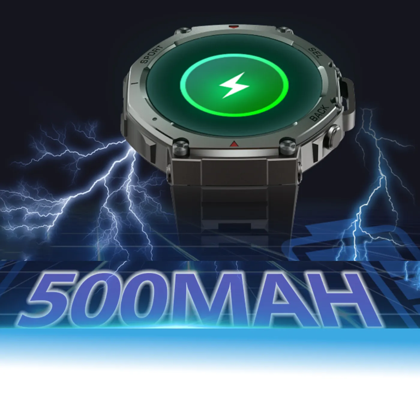 Equipped with a 500 mAh cobalt battery, it lasts 12–15 days under normal use, 5–8 days with intensive use, and 3–5 days with AOD (Always-On Display) activated. In GPS training mode, it lasts 30–35 hours—ideal for long-distance activities or outdoor adventures. -