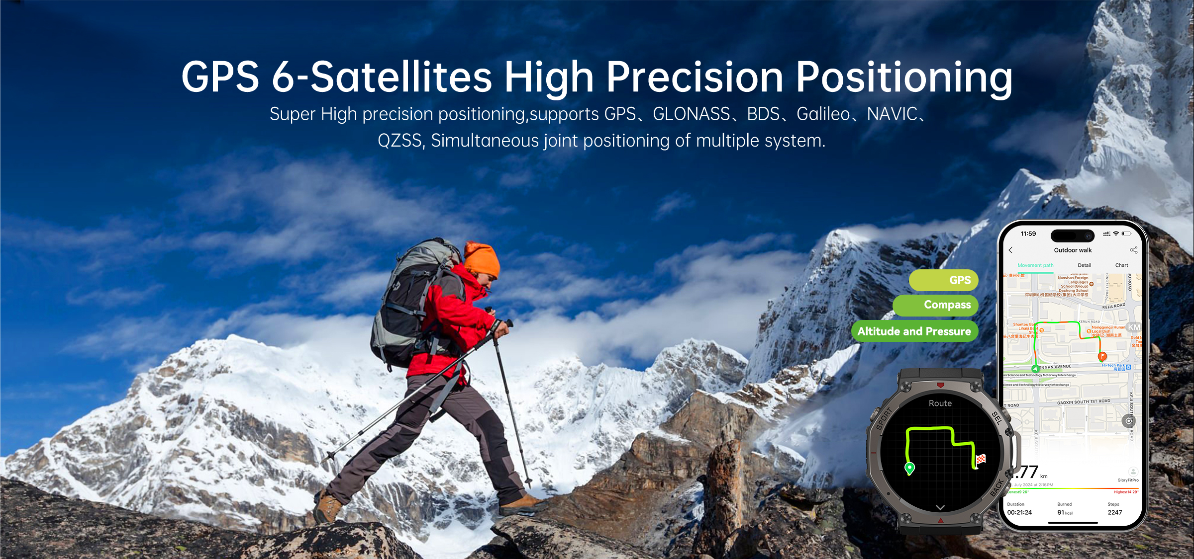 With a dual-frequency 6-satellite positioning system, it offers more stable and accurate positioning and tracking during running, cycling, hiking, and other activities. -